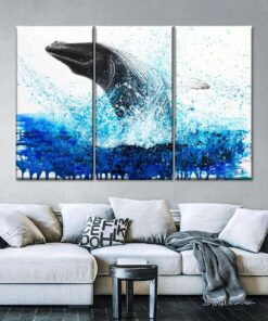 Canvas Art – Nuatical Whale 3 Piece Abstract Painting Canvas Wall Art Decor