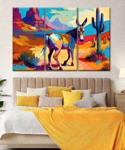 Canvas Art – South West Donkey 3 Piece Abstract Painting Canvas Wall Art