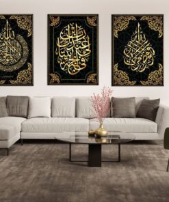 Canvas-Art-3 Pieces Black & Gold Islamic Quran Qoutes Wall Art