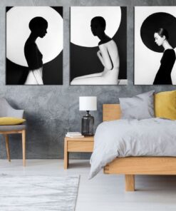 Canvas-art-3 Pieces Black & White Circle Female Figure Abstract Wall Art
