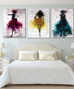 Canvas-Art- 3 Pieces Coulorful Dancing Girl Abstract Wall Art
