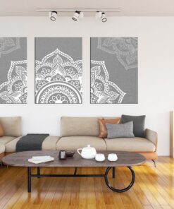 Canvas-Art-3 Pieces Bohomian Grey Mandala Pattern Floral Wall Art