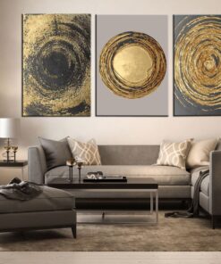 Canvas-ARt-3 Pieces Gold & Black Luxury Circles Decorative Wall Art