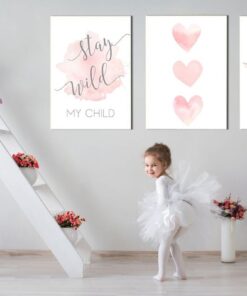Canvas-Art-3 Pieces Watercolour Pink Love Heart Deco Wall Art