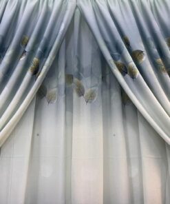 Blue Sheer Floral Living Room Taped Curtains 600 W x 220 H