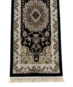 Aman Persian Design Navy/Beige Machine Made Bedside Rug – 150 x 60 cm
