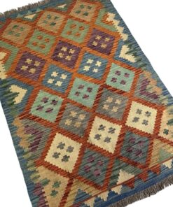Beautiful Handmade Green and Blue Kilim Rug – 138 x 106 cm