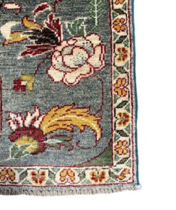 Beautiful Teal Green Small Size Floral Chobi Runner Rug – 85 x 66 cm