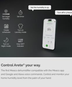 MeacoDry Arete 12L Dehumidifier/ Air Purifier, Full 3-Bedroom Home Coverage