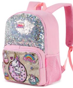 2 Pcs Set Cute Unicorn School Glitter Sequin Backpack – Pink