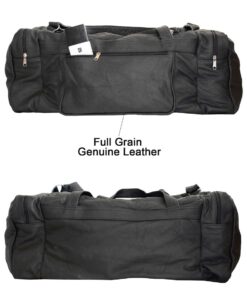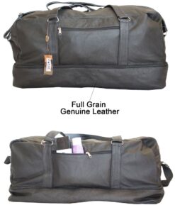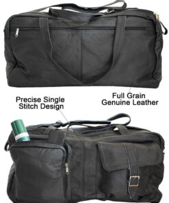 Luvsa LS-SEN12 Unisex Full Grain Genuine Leather 44L Weekender Duffel Bag – Black