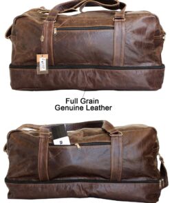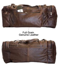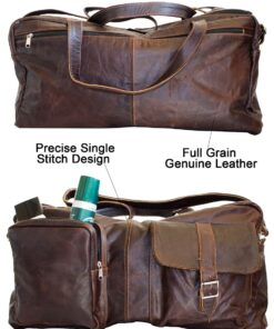Luvsa LS-SEN12 Unisex Full Grain Genuine Leather 44L Weekender Duffel Bag – Coffee