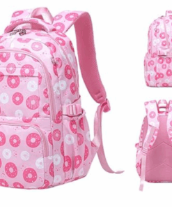 School Backpack Girls 3Pcs Sets Colorful Donuts with Lunch Bag Pencil case – SoftPink