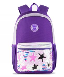 School Bookbags for Girls Glitter Stars Sequin Stylish Shiny – Purple