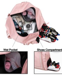 Sports Gym Bag Travel Duffel Bag Dry Wet Pocket & Shoes Compartment – Pink