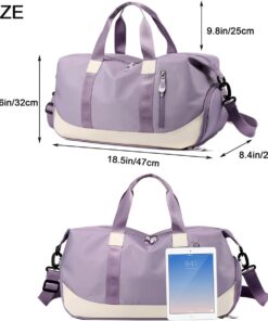 Sports Gym Bag Travel Duffel Bag Dry Wet Pocket & Shoes Compartment – Purple