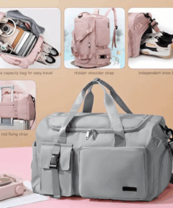 2-in-1 Large Capacity Backpack & Duffel Bag with Shoulder Strap – Grey