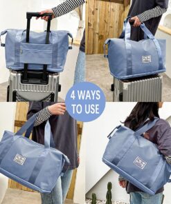 Travel Duffle Bag Folding Expansion Holdall Bag Waterproof – Blue