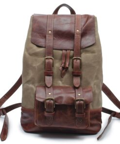 Genuine Leather and Heavy Waxed Cotton Canvas Backpack – Khaki & Pecan Small