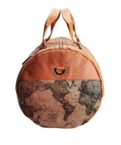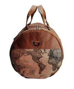 Genuine Leather Duffel Bag – World Map Illustrated – Midnight