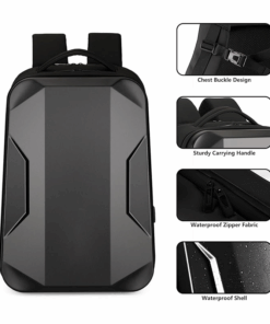Hardshell Waterproof Travel Laptop Anti-theft Gaming Backpack with USB Port – Black