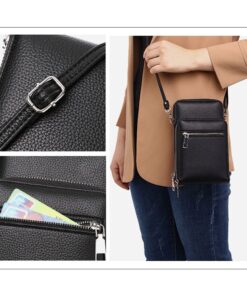 Men Crossbody Leather Messenger Bag Cellphone Holster Pouch Wallet â Black