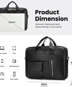 Men’s Leather Laptop Bag Business Handbag Crossbody Bag for 14 In Notebook – Black