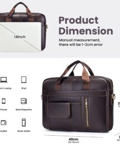 Men’s Leather Laptop Bag Business Handbag Crossbody Bag for 14 In Notebook – Brown