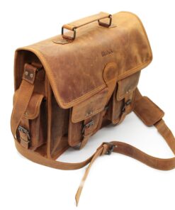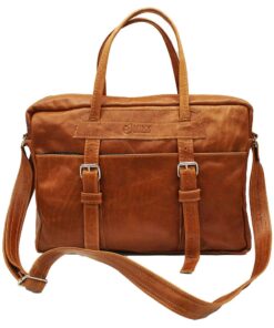Minx – Genuine Leather Messenger Hand Bag with Buckle – Brown