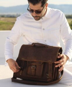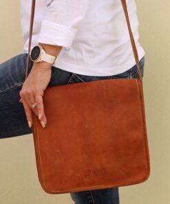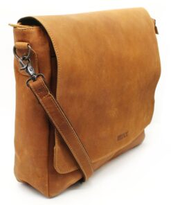 MIRELLE Genuine Leather Messenger Bag – Fits Tablets & iPads – Pecan Brown