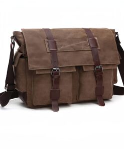 Retro Military Men’s Canvas Crossbody Bag Leather Canvas Laptop Bag – brown