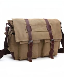 Retro Military Men’s Canvas Crossbody Bag Leather Canvas Laptop Bag – khaki