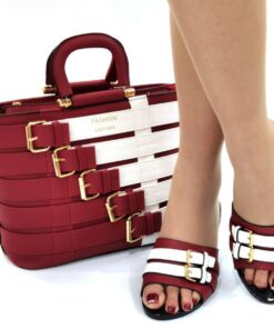 Stunning Spacious Handbag – PU Leather – Crossbody Strap – Belt Design – Ruby