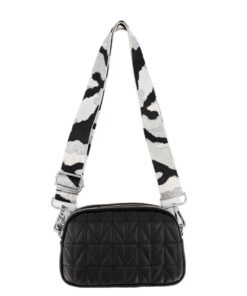 Trendy Little Leather Bag with Woven Strap – Black and Silver Camouflage