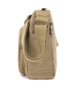 Unisex Canvas Multi-Compartment 11″ Inch Messenger Bag – Khaki