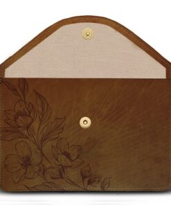 13 Inch Genuine Leather Laptop Sleeve – Floral – Saddle Brown