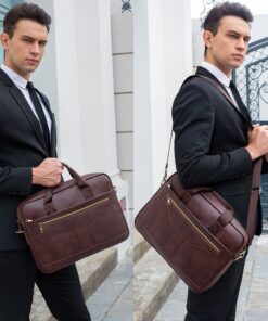 Fino 0824 Full Grain Italian Aniline Nappa Leather 15 Inch Laptop Bag – Coffee