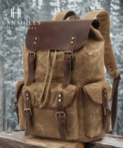 Khaki Vintage Leather and Waxed Canvas Laptop Bag and Backpack