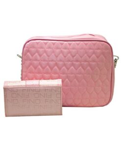 Fino SK-5525+F-093 Quilted Faux Leather Bag & Jacquard Purse Set – Pink
