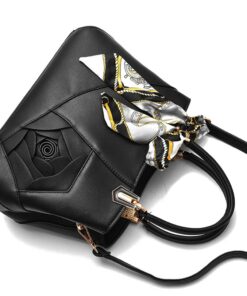 Flower Design Luxury Women Handbag PU Fashion Shoulder Bag-Black