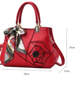 Flower Design Luxury Women Handbag PU Fashion Shoulder Bag-Red