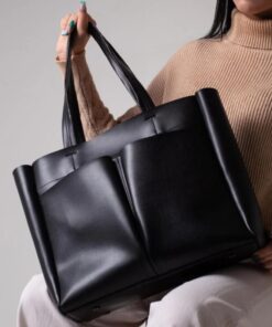 Genuine leather hand bag – black