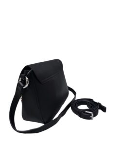 Genuine Leather Crossbody Handbag with 2 Front Deep Pockets – Black