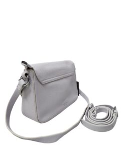 Genuine Leather Crossbody Handbag with 2 Front Deep Pockets – Silver