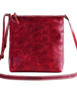 Genuine Leather Small Crossbody Bag with Nguni Keyholder – Cherry