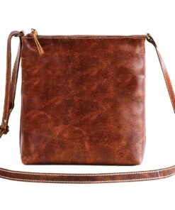 Genuine Leather Small Crossbody Bag with Nguni Keyholder – Saddle