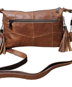 Genuine Leather Tassel Shoulder Handbag – Brown