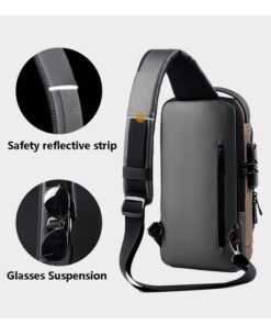 GZIMO Anti-Theft Lock Sling Chest Bag Shoulder Crossbody With USB Port – Grey & Brown
