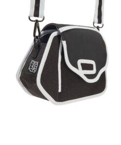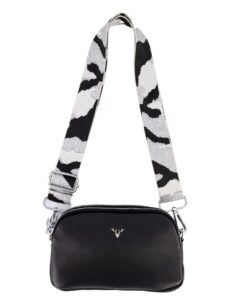 Jetsetter Black Leather Crossbody Bag – Black, Silver & White Camo Strap