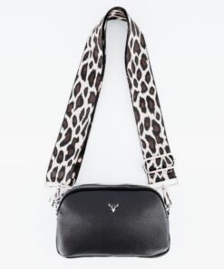 Jetsetter – Black Leather Crossbody Bag – Brown/Silver Leopard Print Strap